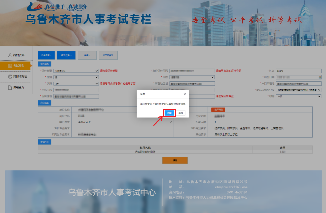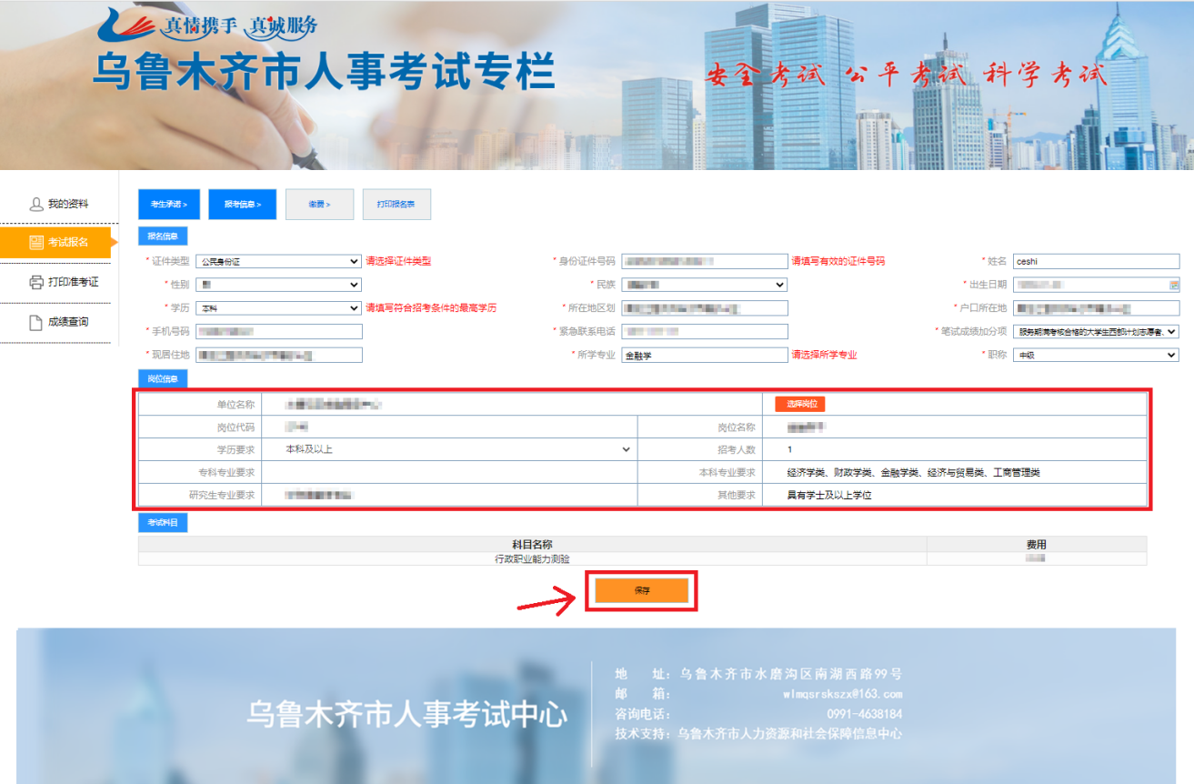 十一、核对填写的报考信息及岗位信息,无误后点击“保存”,进行下一步操作;