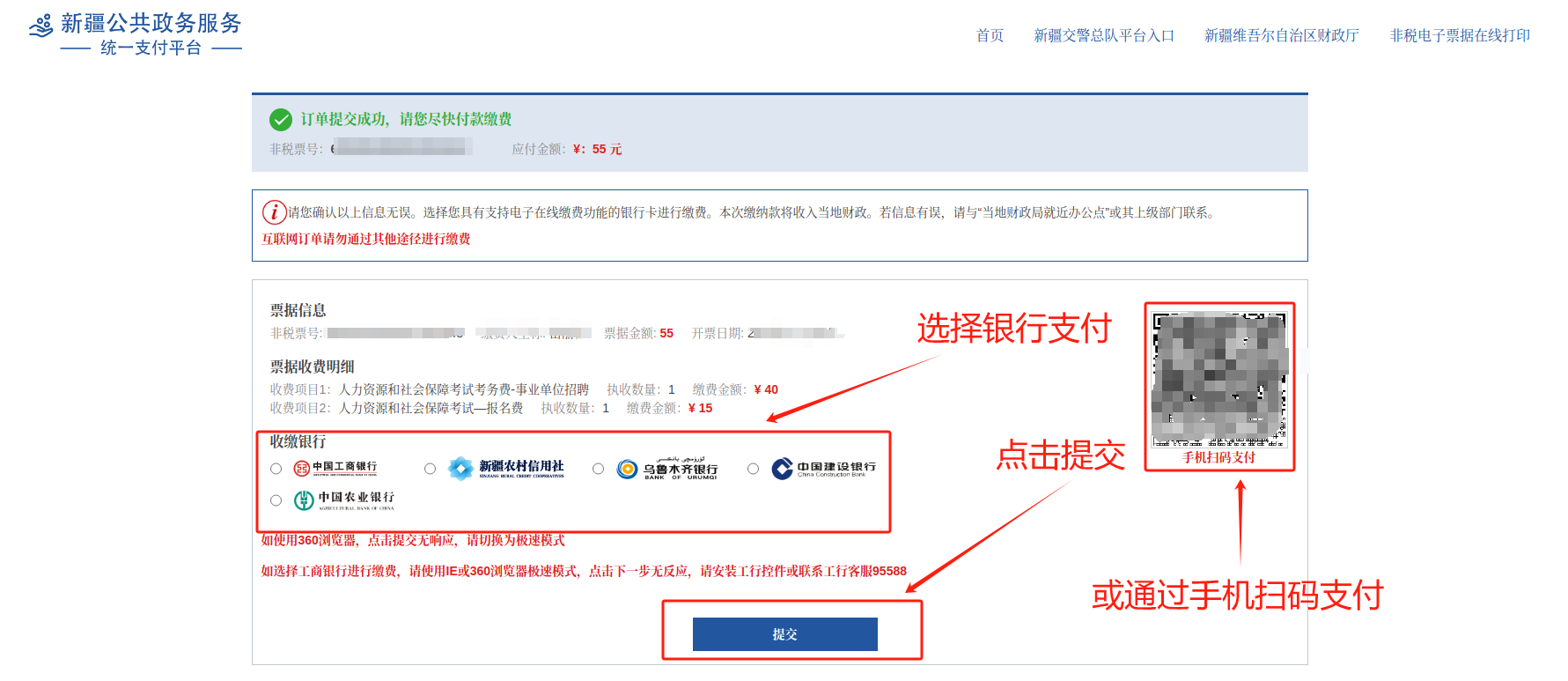 十四、选择收缴银行,点击提交;
