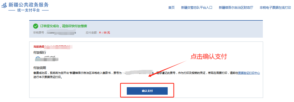 十五、点击“确认支付”,输入对应银行卡号及预留手机号验证码后进行支付;